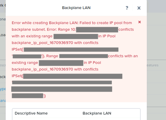 Delete the backplane pool with the command: network_segmentation –ip_pool_name= »name of pool » ip_pool delete