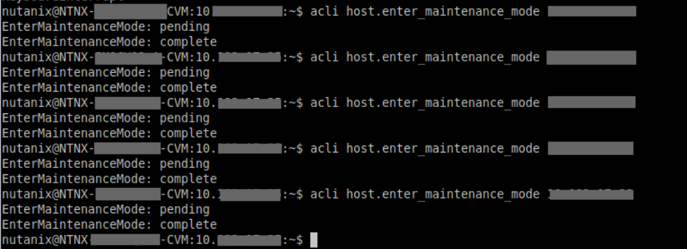 You must first put the hosts in maintenance mode with the command: acli host.enter_maintenance_mode « IP ADDRESS of host »