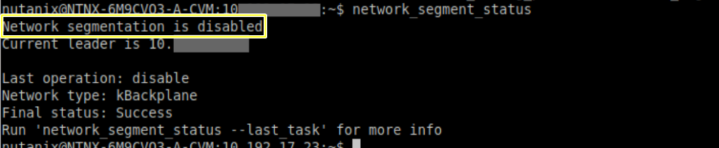 Check that network segmentation is disabled. network_segment_status