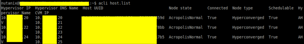 We will therefore put each hypervisor in maintenance mode. From a CVM, retrieve the list of necessary IPs: