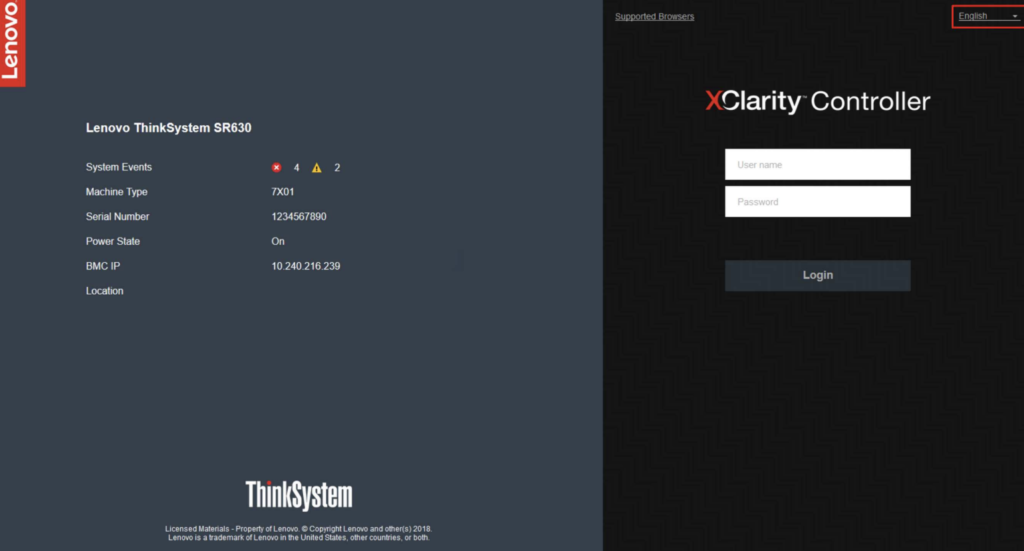 Connect to Xclarity Controller (USER : USERID | PASSWORD : PASSW0RD)