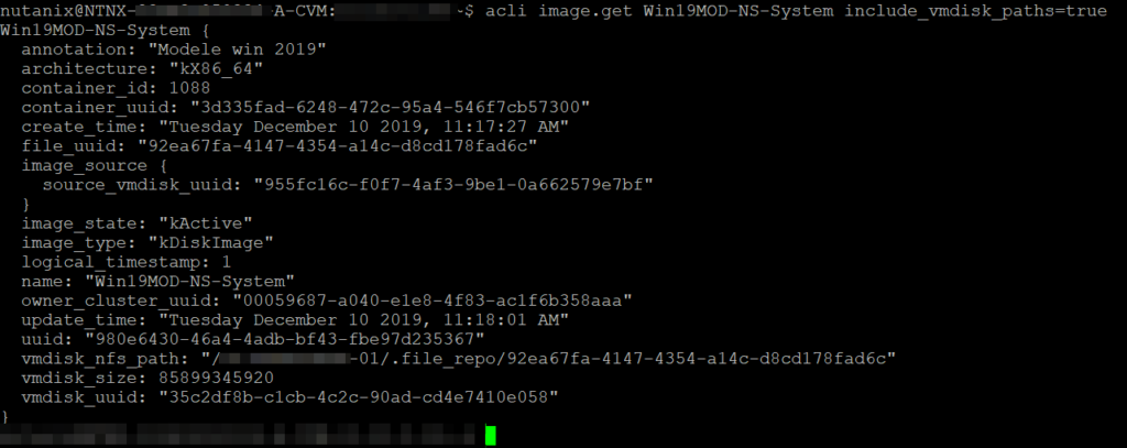 You must connect to a CVM and enter the following command to find its path: acli image.get "Name of image" include_vmdisk_paths=true